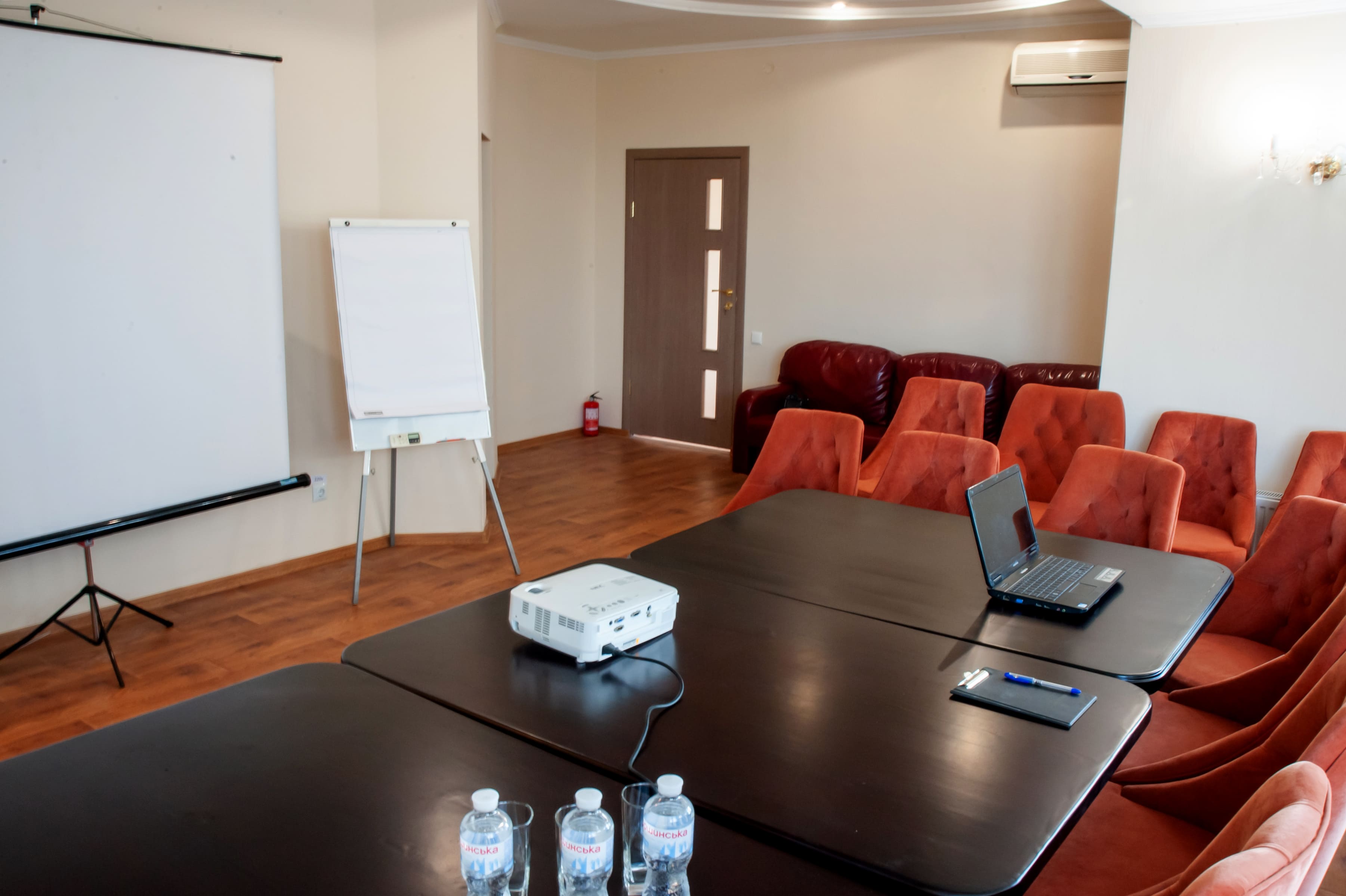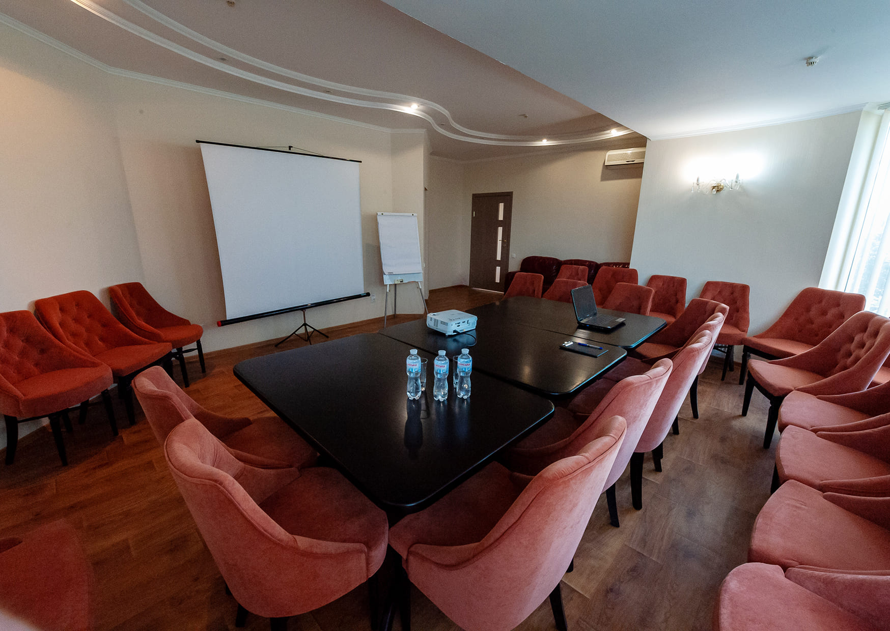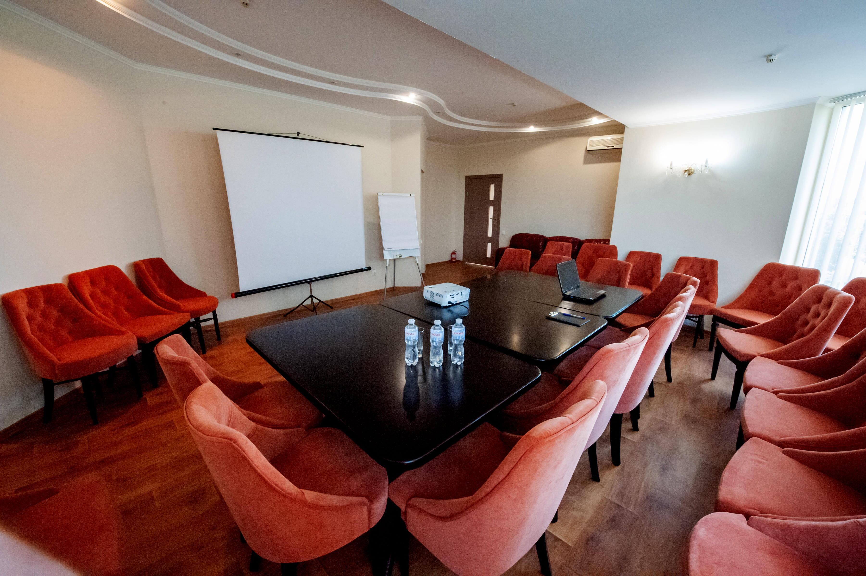 Ресторанно-готельний комплекс «Hotel Palace Ukraine» пропонує зали для проведення банкетів, прес-конференцій, відео-презентацій, семінарів, ділових зустрічей та ін. Для проведення подібних заходів у нас є все необхідне обладнання, саме: проектор, фліпчарт, екран, мікрофон, колонки, мікшер, дротовий та бездротовий інтернет. Також пропонуємо Вам у перервах проведення різноманітних конференцій та презентацій організувати для Вас каву-паузи, а по завершенню – Фуршет. Для наших гостей пропонується на вибір два зали: Зал "Малий" місткістю до 30 осіб на 4 поверсі нашого готелю. Зал підходить для проведення тренінгів, презентацій та різних заходів для невеликої кількості осіб. Площа залу 80 кв. з окремим санвузлом. Зал ресторану місткістю 120 осіб на 5 поверсі готелю з чудовим видом на місто. Зал підходить для проведення великих конференцій та банкетів за бажанням гостей. Площа зали 180 кв.