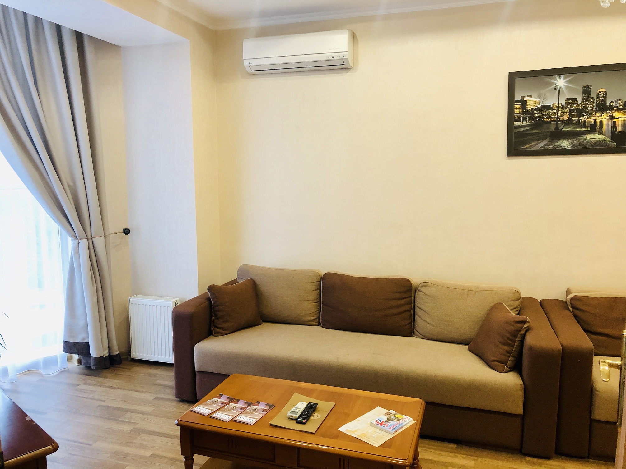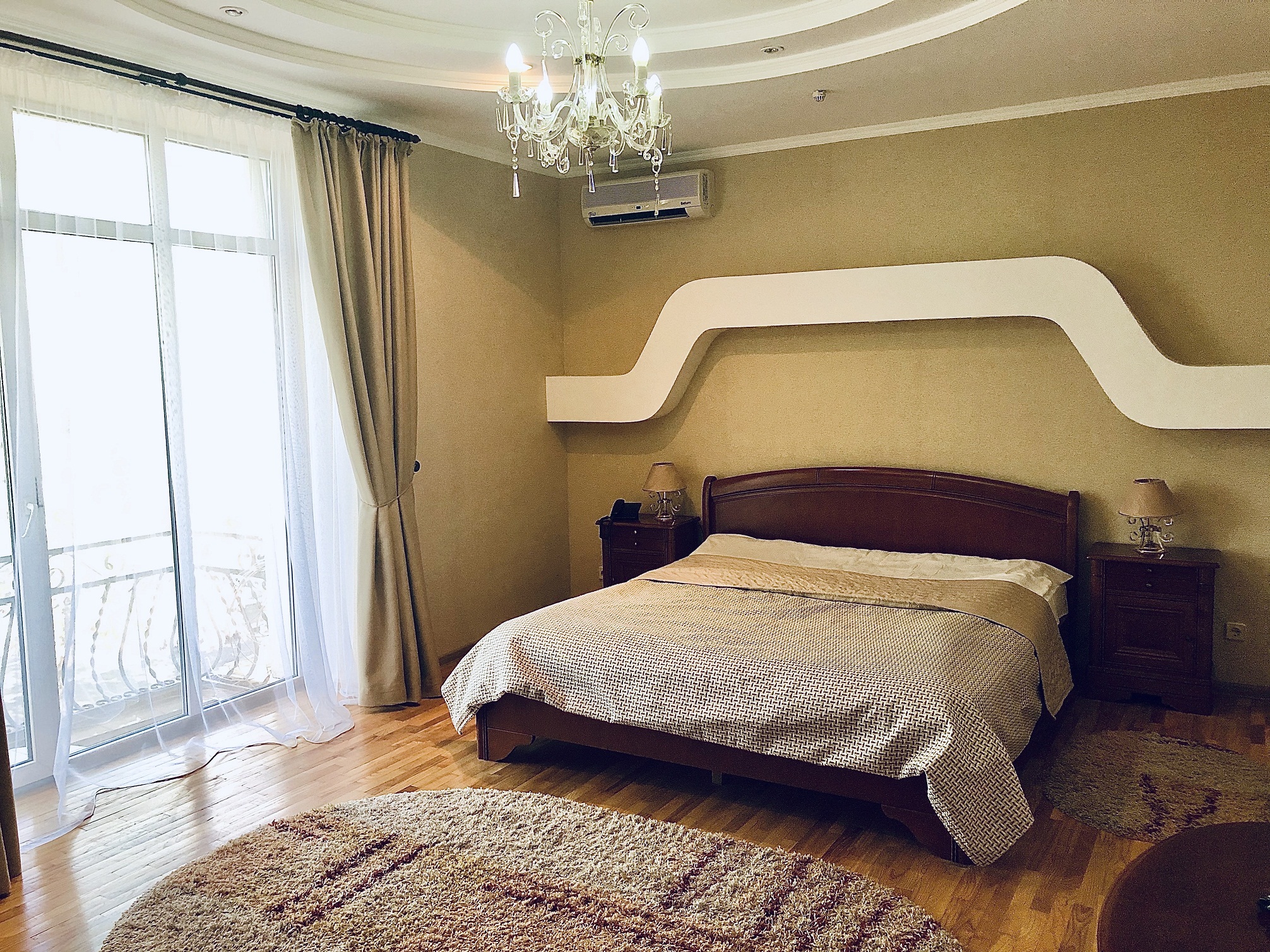 от 2800 грн./доб.ЗабронюватиУ кондиціонованому номері є кабельне телебачення, холодильник і окрема ванна кімната з душовою кабіною. У ньому є окрема вітальня з м'яким куточком (розкладний двоспальний диван) і журнальним столиком, а також окрема спальня з великим двоспальним ліжком і 2 телевізори.