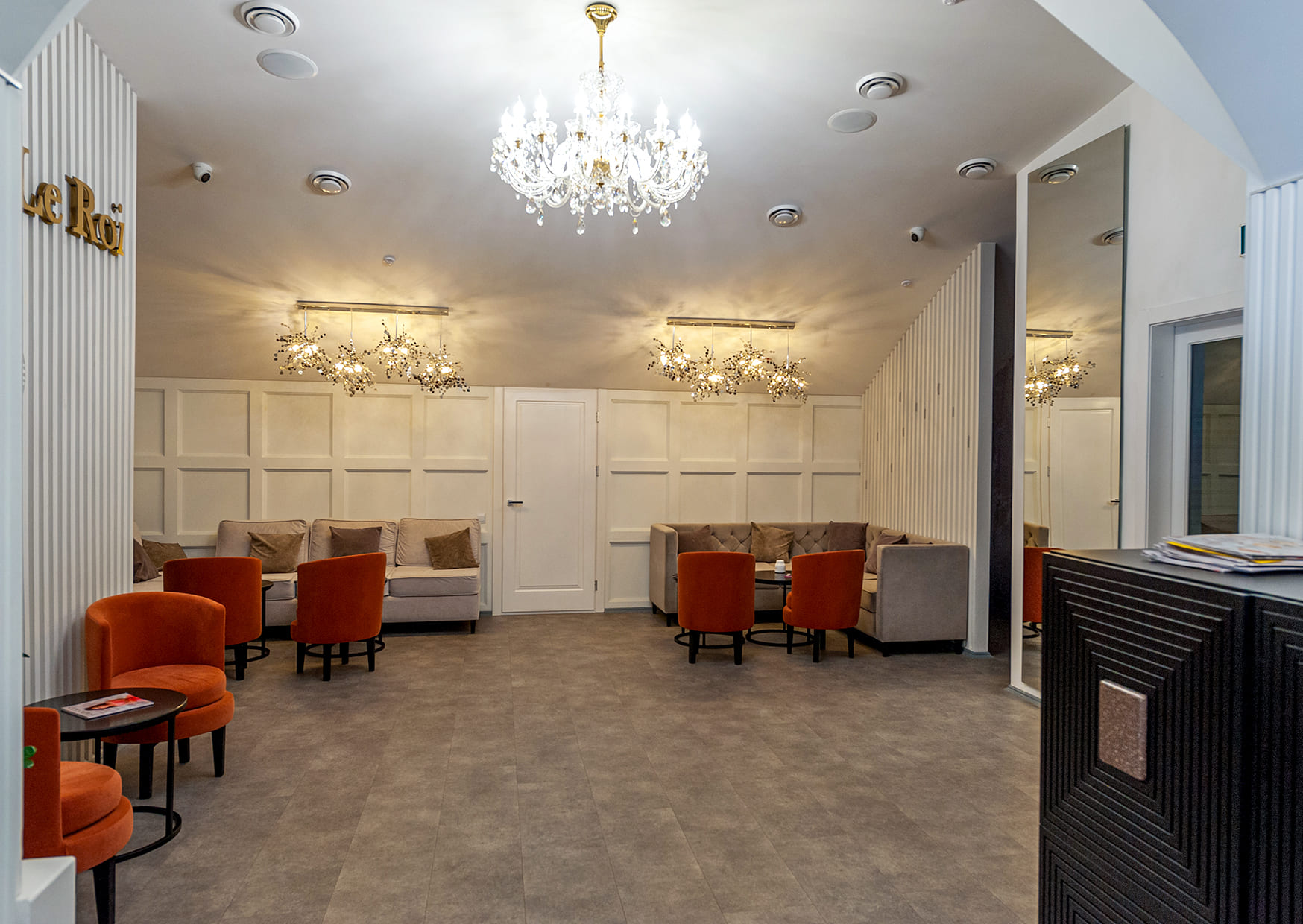 Ресторан Le Roi — проект, створений ресторатором спільно з бренд-шефом, для отримання гастрономічної та естетичної насолоди наших гостей. Дизайн інтер'єру виконаний в унікальному стилі. Кожна деталь інтер'єру створена для вашого комфорту і наголошує на справжньому «культі гостя». Зал ресторану ідеально підходить для проведення банкетів, корпоративів та урочистих заходів, вміщуючи до 120 персон. Також зал можна використовувати для проведення конференцій, презентацій та тренінгів з необхідним обладнанням. Жива музика, професійне обслуговування та меню розроблене з останніми тенденціями світової кулінарії зроблять торжество незабутнім. Ми пропонуємо відзначити Вашу подію у ресторані LeRoi. Наші фахівці готові відповісти на будь-яке запитання щодня з 11:00 до 20:00.